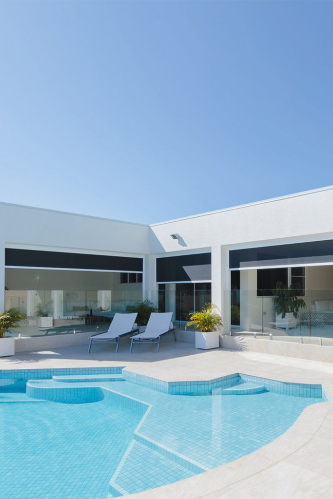 Le Magna tende a rullo grandi dimensioni coprono ampie superfici con un solo tessuto e un solo motore, e offrono una eccellente protezione solare e privacy.  Una soluzione ottimale per grandi spazi vetrati in quanto ad estetica e comodità.